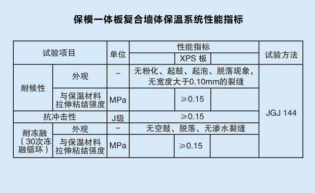 保模一體板復(fù)合墻體保溫系統(tǒng)性能指標(biāo)